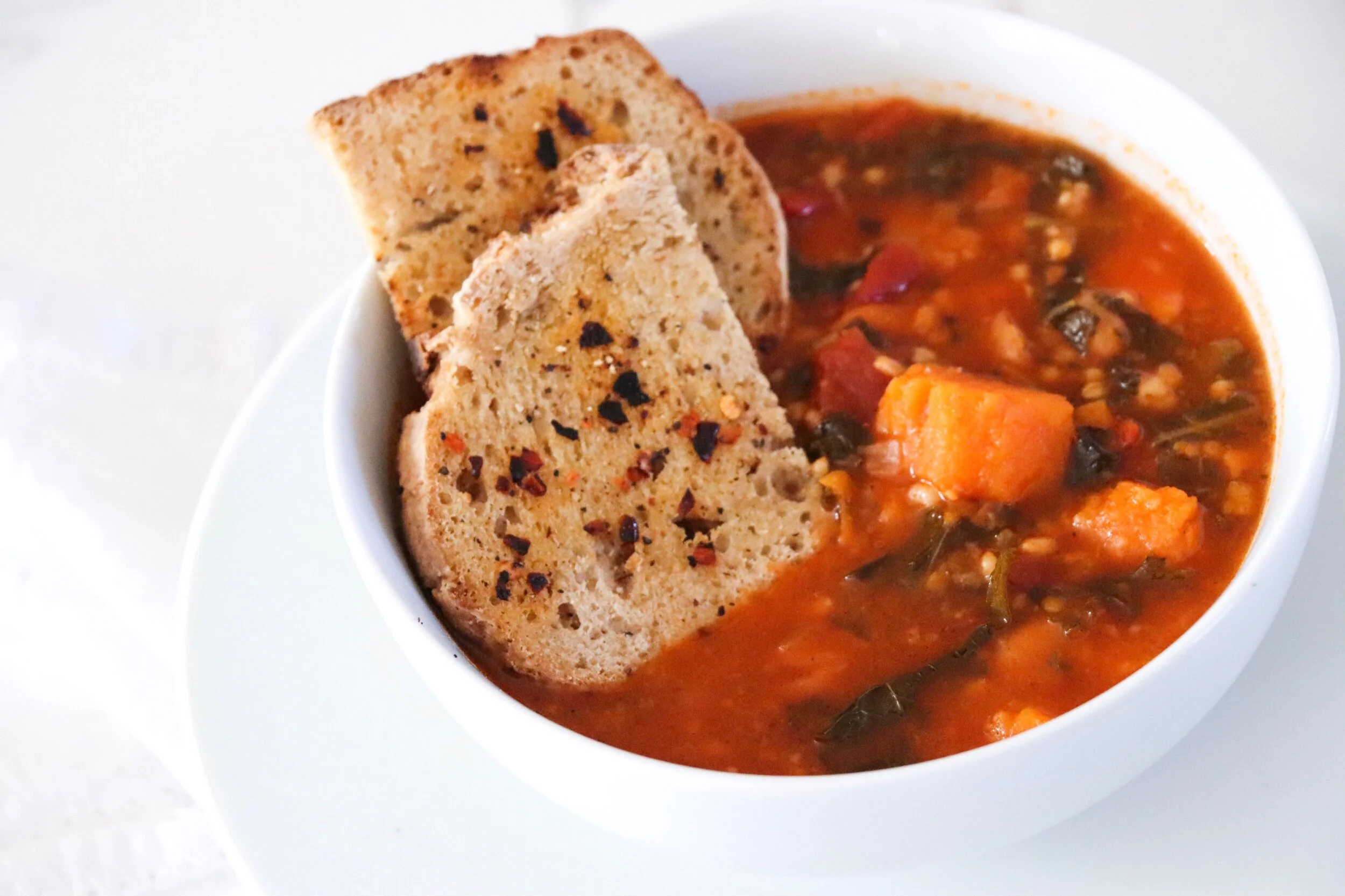 So as I came chilled to the actual bone, I knew exactly what I was making. And it was with all ingredients I have right in my fridge and pantry. YAY! The ingredient list seems long, but most of the supplies are things you have at home already. And this is super flexible. If you don’t have sweet potato, use regular white potato, or squash. No kale? Sub spinach or another leafy green. If you don’t have an Instant Pot, just make this right on your stove top. It will probably take a little longer to cook the squash than it would in the IP.